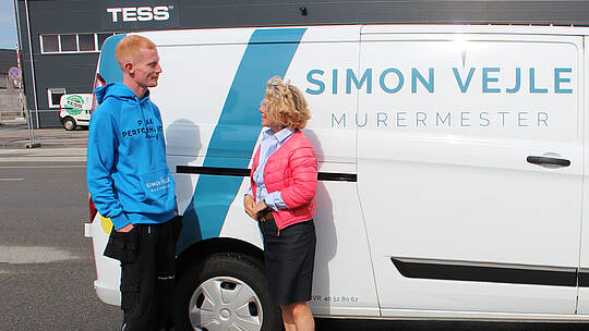 - Jeg havde fået oprettet CVR-nummer, men jeg havde brug for at snakke med nogen om, hvordan det at starte virksomhed i det hele taget fungerer. Hos Sidsel (iværksætterkonsulent) fik jeg svar på de praktiske spørgsmål fx omkring virksomhedsform, og vi fik snakket om min markedsandel og potentielle kunder. Jeg ved faktisk ikke, om jeg ellers var kommet i gang, da det ikke bare er noget, man lige gør, siger Simon, der har et fuldt professionelt set up med firmabil, firmatøj og professionel hjemmeside.