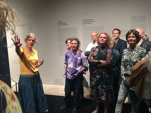 Aftenen sluttede med en rundvisning i særudstillingen Mesterværker, som for første gang udstiller de fem store bestillingsværker, som P.S. Krøyer malede – fire af dem hænger normalt ikke tilgængeligt for offentligheden. Malerierne er en imponerende bedrift med portrætter af 194 personer fordelt på de fem malerier – det største på hele 14 kvadratmeter. Lisette Vind Ebbesen er en fantastisk formidler, og hun fortalte spændende anekdoter om de fem maleriers tilblivelse – og kunne også fortælle om den lidt nervepirrende proces med at fragte fem så store og vigtige malerier fra deres vante plads og til Skagen – det største lærred på 14 kvadratmeter blev fx båret ned ad en trappe af 12 personer.