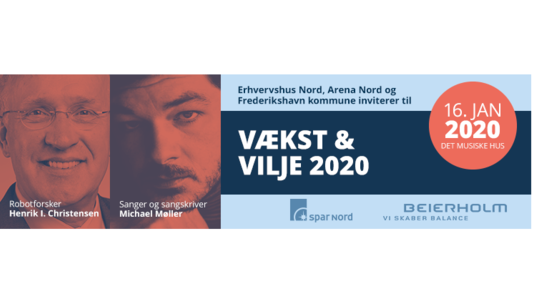 Den 16. januar 2020 inviterer Erhvervshus Nord, Frederikshavn Kommune og Arena Nord til Vækst og Vilje prisuddeling i Det Musiske Hus med Spar Nord og Beierholm som sponsorer. Igen i år byder programmet for Vækst og Vilje på en spændende hovedtaler med lokale rødder.