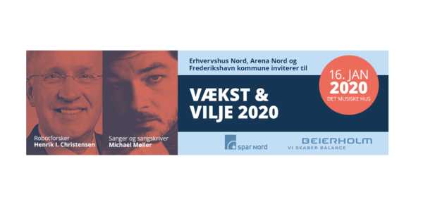 Den 16. januar 2020 inviterer Erhvervshus Nord, Frederikshavn Kommune og Arena Nord til Vækst og Vilje prisuddeling i Det Musiske Hus med Spar Nord og Beierholm som sponsorer. Igen i år byder programmet for Vækst og Vilje på en spændende hovedtaler med lokale rødder.