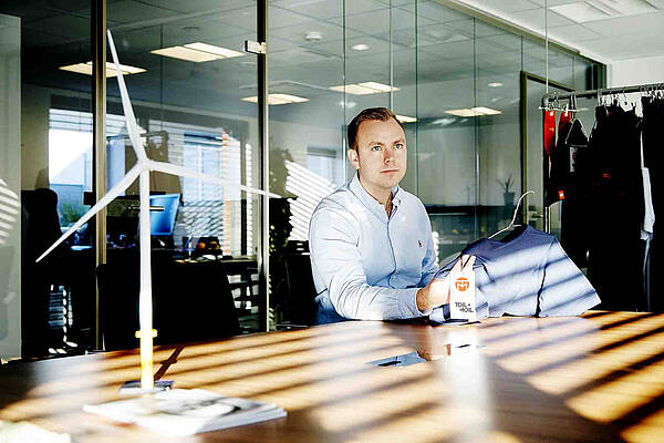 - Vi udfordrer gerne vores kunder på, hvor de fx placerer deres logo på arbejdstøjet. Kan det placeres på en lomme, som kan klippes af? Eller længere nede af buksebenet, så de kan laves om til shorts? På den måde øger vi genanvendeligheden og produktets levetid, forklarer administrerende direktør Dennis Conradsen.