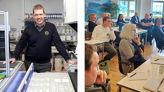 De mandshøje, fuldautomatiske maskiner brummer på livet løs, for at lave tryk på alskens stof. Miljøvenlig vil for de fleste næppe være det første ord, der popper op, når man træder ind i den industrielle hal. Men miljøvenlig er lige præcis ordet, der kendetegner det, der foregår her.