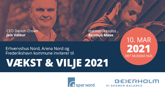 Pressemeddelelse fra Frederikshavn Erhvervsråd: Vi har besluttet at udskyde Vækst & Vilje-arrangementet i Det Musiske Hus fra 7. januar til 10. marts. Det sker i lyset af den aktuelle corona-situation.
