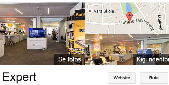 • Google Street View er Google’s officelle billeder fra din by. Med Googe Street View kan kunder besøge din virksomhed allerede på søgeresultat-siden. Med Google Street View kan kunden gå en tur og se dine billeder fra i din café, butik og få en oplevelse allerede inden ankomsten.