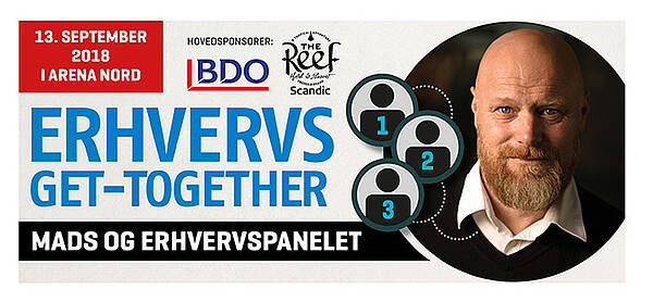 Traditionen tro inviterer Frederikshavn Erhvervsforening, Skagen Erhvervsforening og Sæby Erhvervsforening til Erhvervs-Get-Together. Denne gang i Arena Nord, hvor vi har fornøjelsen af at få journalist og manden bag radiosuccessen ’Mads og monopolet’ Mads Steffensen på scenen. Han vil sammen med tre nøje udvalgte paneldeltagere debattere aktuelle erhvervsdilemmaer, som vi formentlig alle kan nikke genkendende til - og søger nye perspektiver på.